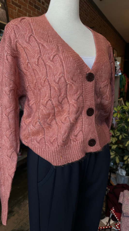 BRICK DOLMAN SLEEVE BACK LACE UP CABLE KNIT SWEATER