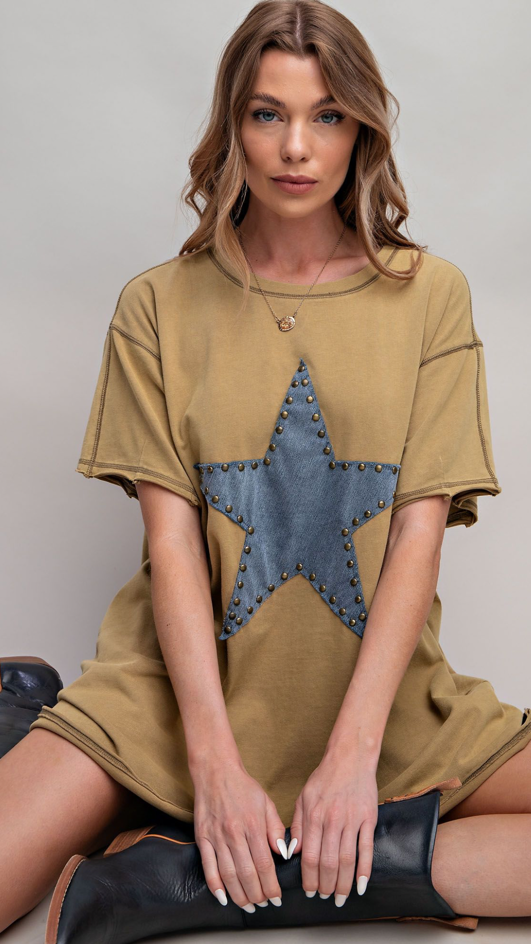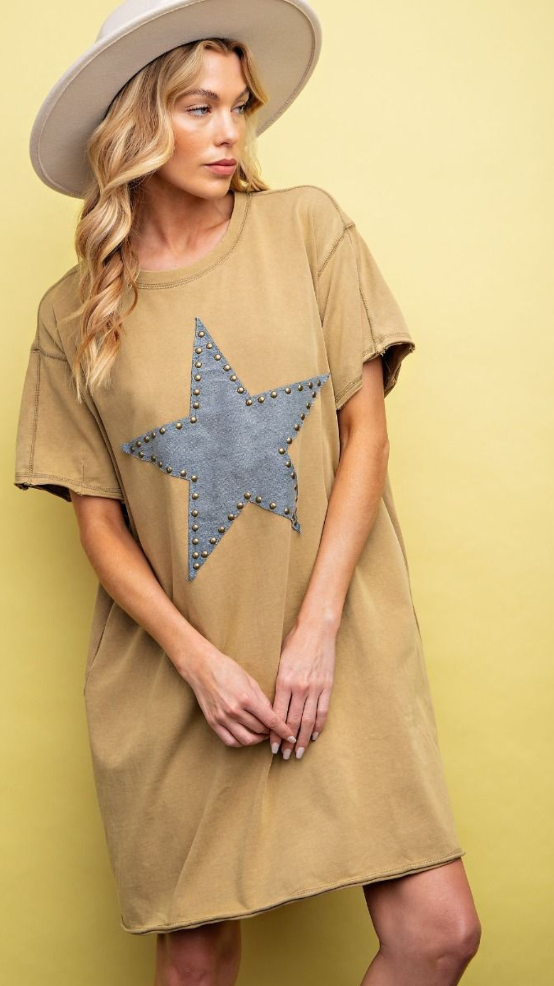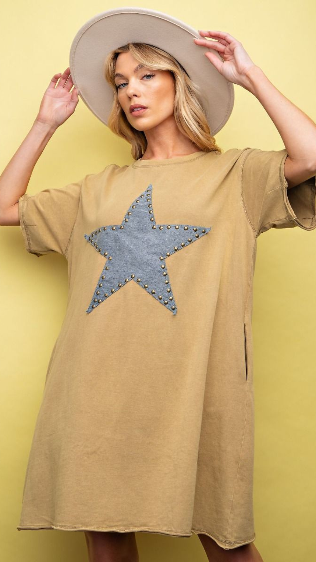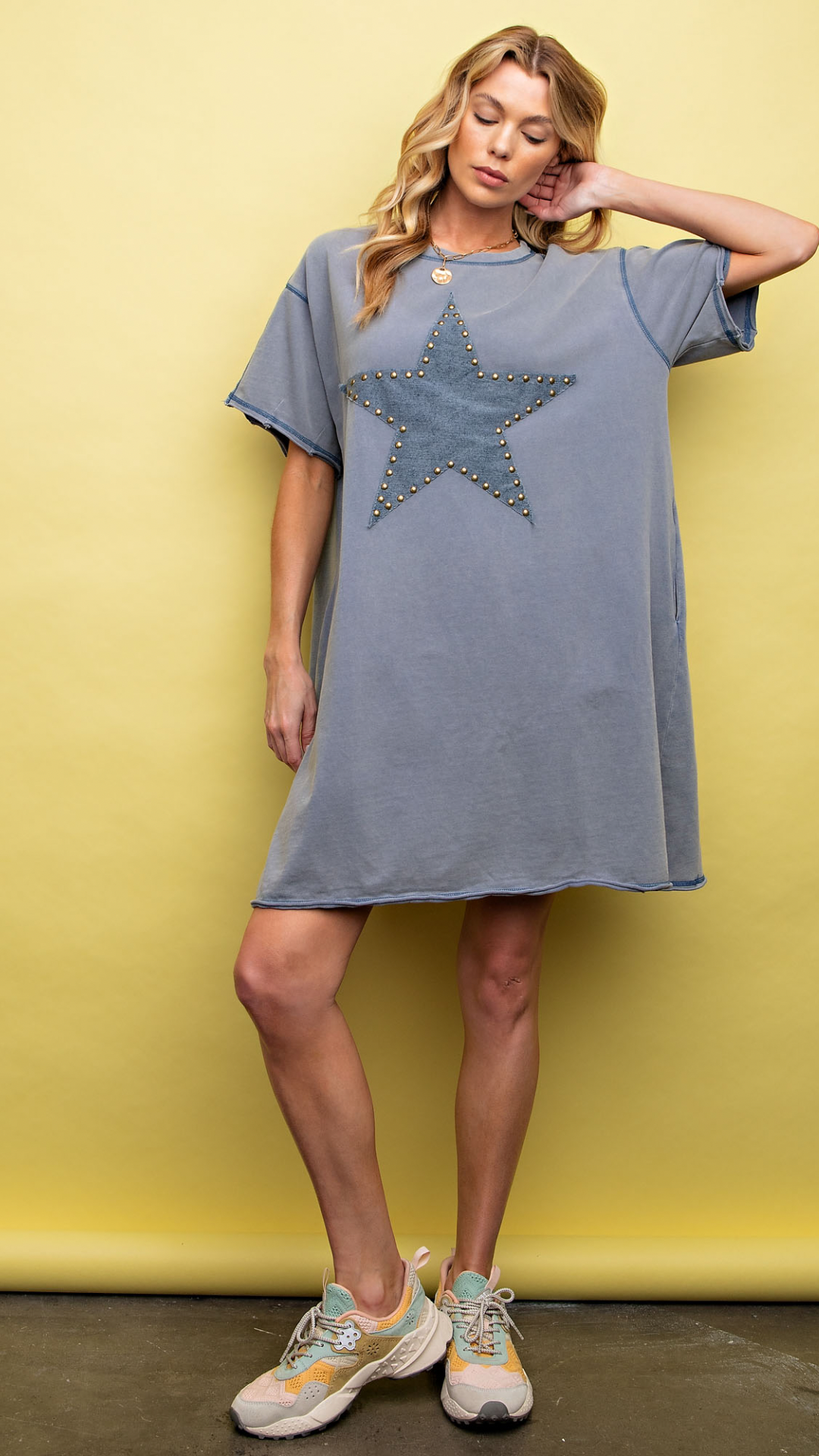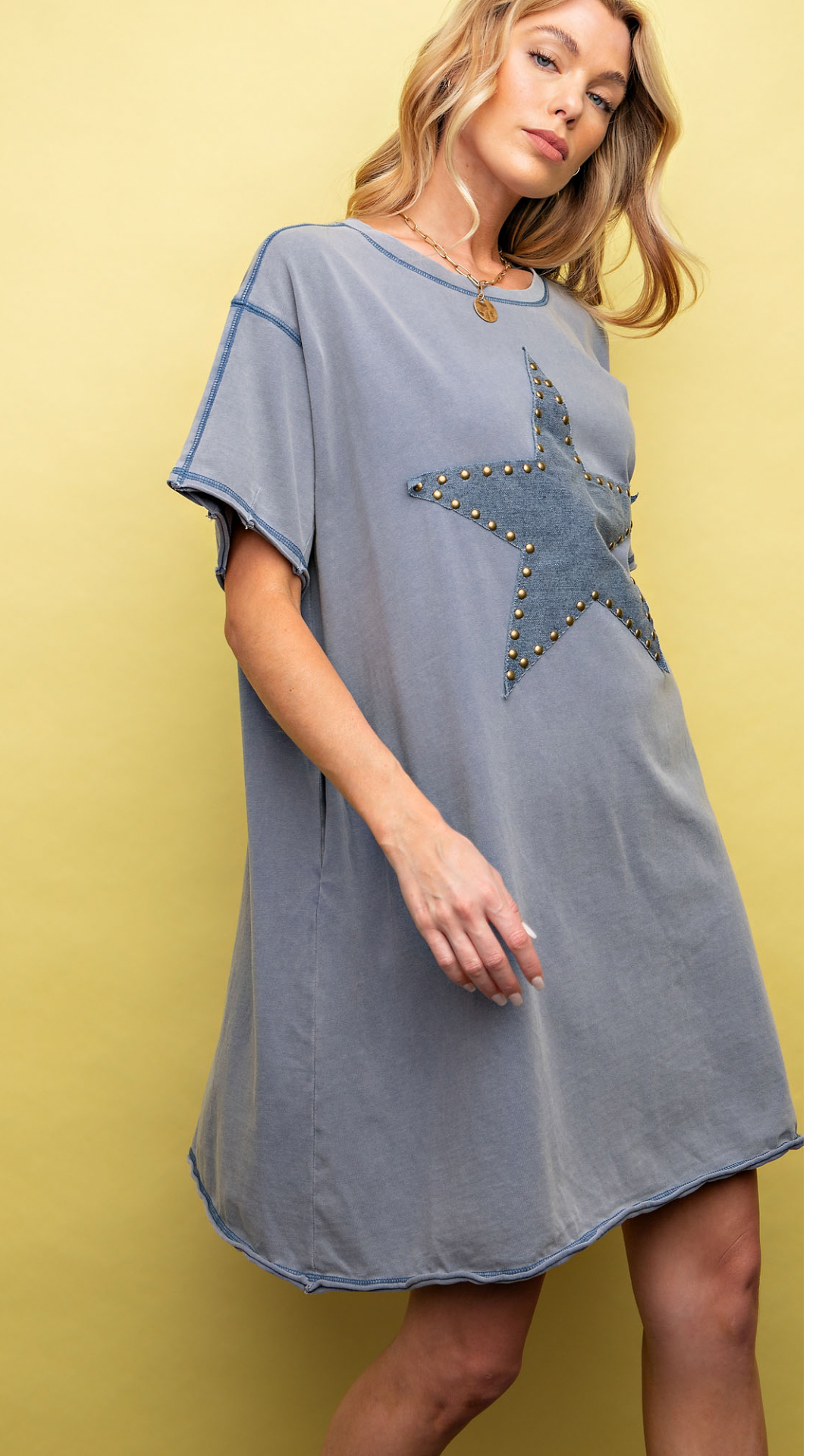 STAR PATCH MINERAL WASHED T SHIRT DRESS